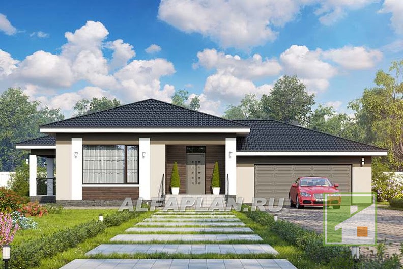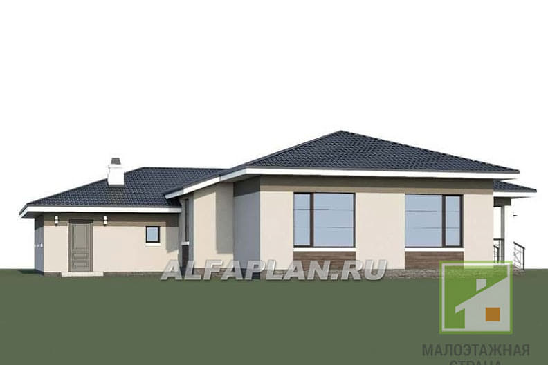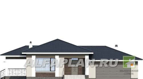 Проект традиционного одноэтажного загородного дома с красивой входной группой и комбинированной отделкойМосква