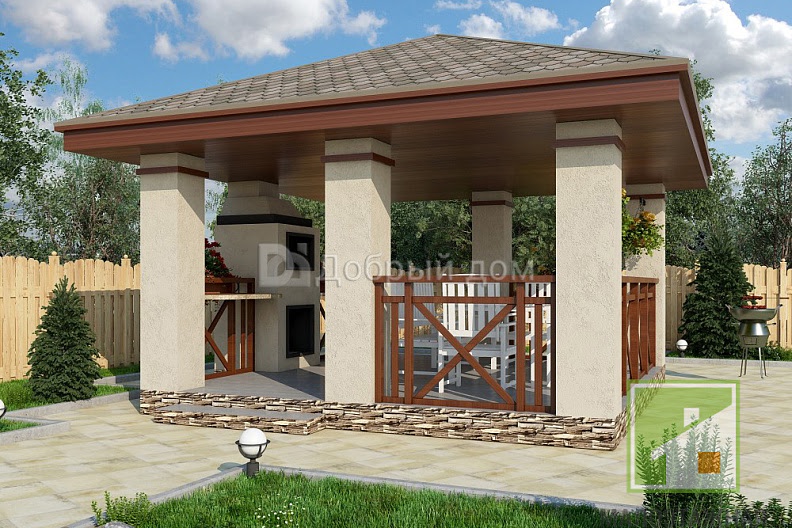 Проект AS-2002-9 - это открытая кирпичная беседка для летнего отдыха.