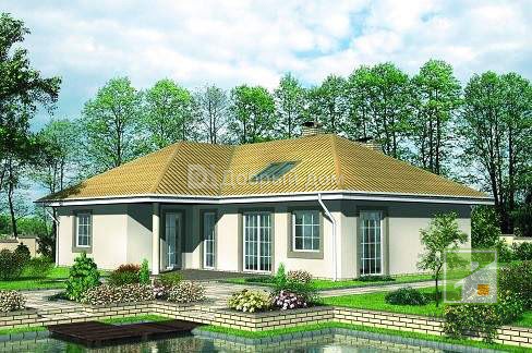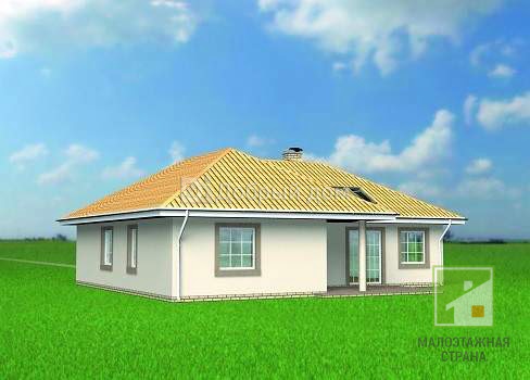 Проект одноэтажного каркасного дома AS-353F. Особенности проекта - Благодаря грамотному планированию помещений дневная и ночная зоны не пересекаются и не создают дискомфорта. - В одном крыле находится совмещенная кухня-гостиная, В другом крыле - две спальные комнаты, санузел и кабинет. - Проект очень уютного одноэтажного дома идеально подходит для загородного дачного отдыха, где можно провести зимние каникулы. - Отличным дополнением стал камин, который добавляет ощущение тепла и уюта в этот небольшой дом. Представленная отделка фасада дома взаимозаменяема. При желании, Вы можете использовать штукатурку с декоративными элементами, облицовочную плитку с фактурой под кирпич или камень, имитацию бруса с окраской и прочие варианты навесной облицовки, которая крепится к фасаду и не требует дополнительной опоры на фундаменте.