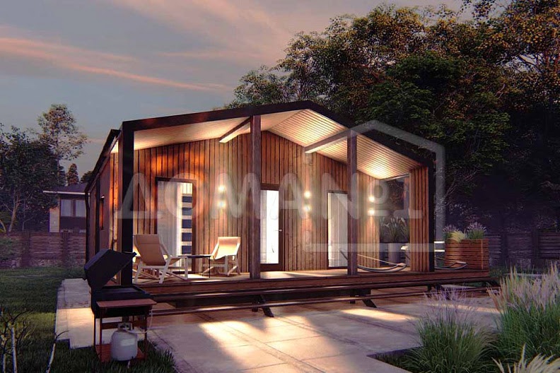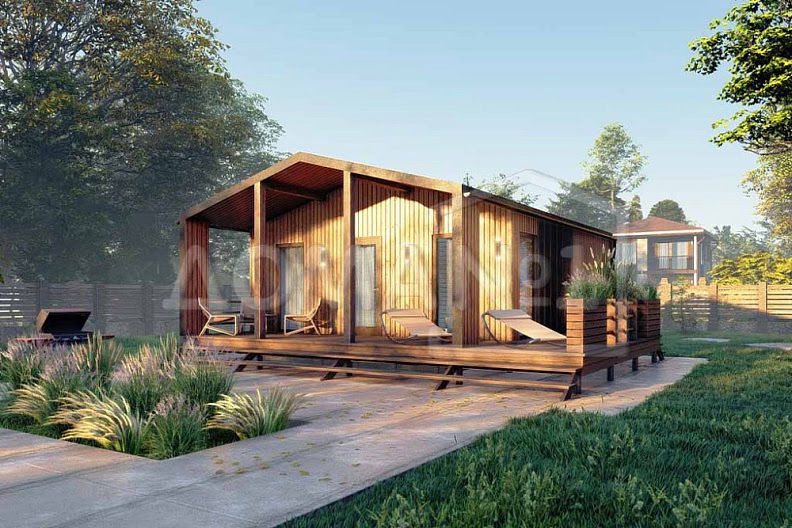 Проект одноэтажного дома с плоской кровлей и большими окнами