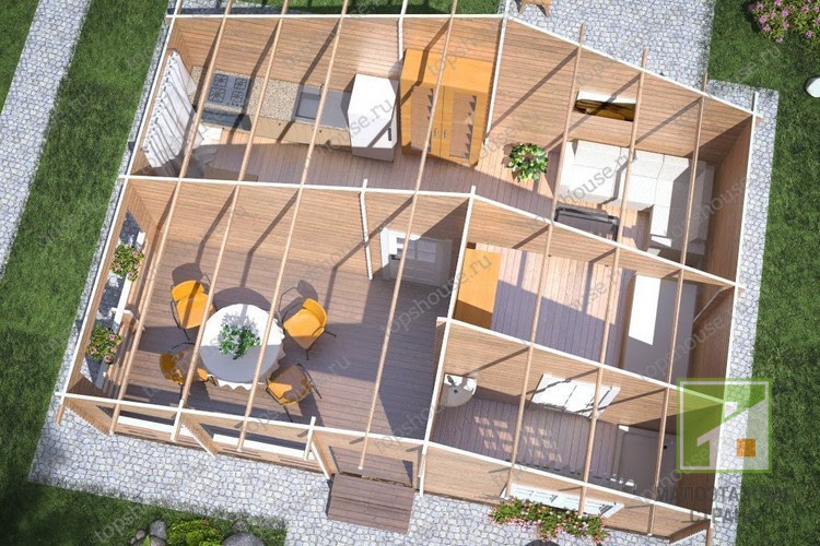 Самый необычный проект садового дома от ТопсХаус для любителей простора и уединенности одновременно. Наверняка многим он покажется странным, но только настоящие ценители в этой странности увидят загадочную привлекательность.