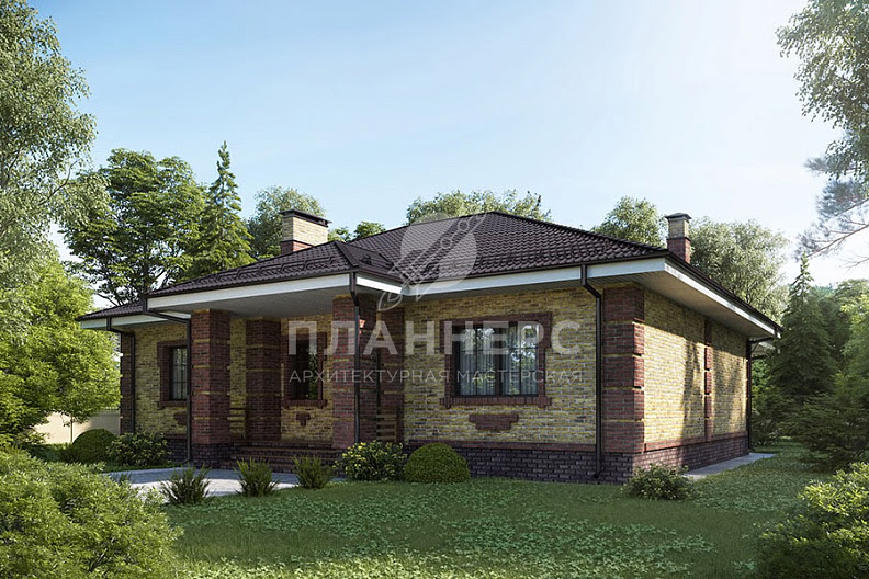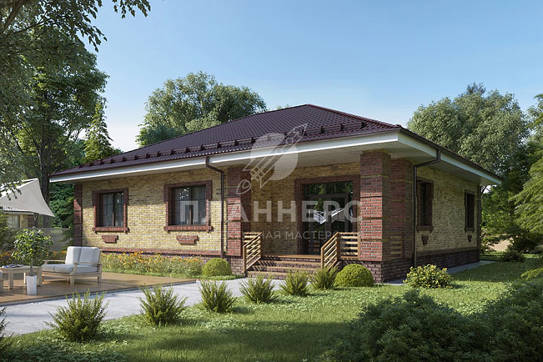 Проект компактного одноэтажного дома с четырехскатной крышей