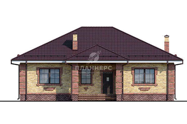 Проект одноэтажного дома с красивым крыльцом и террасой