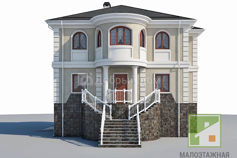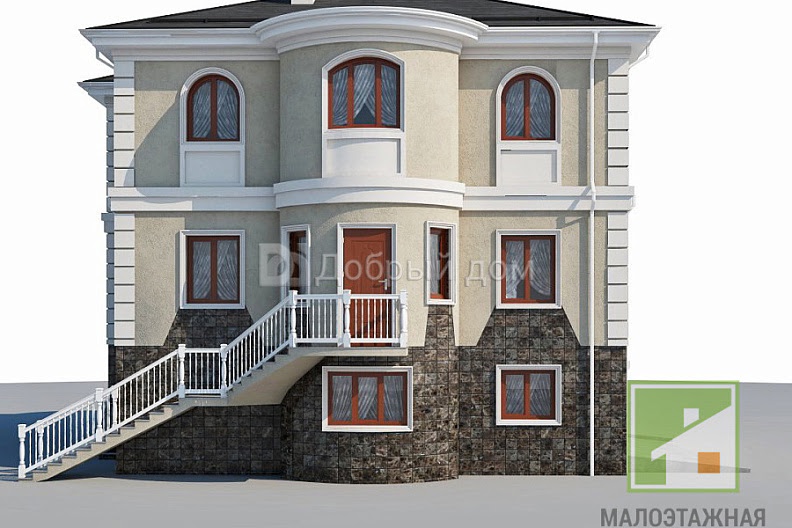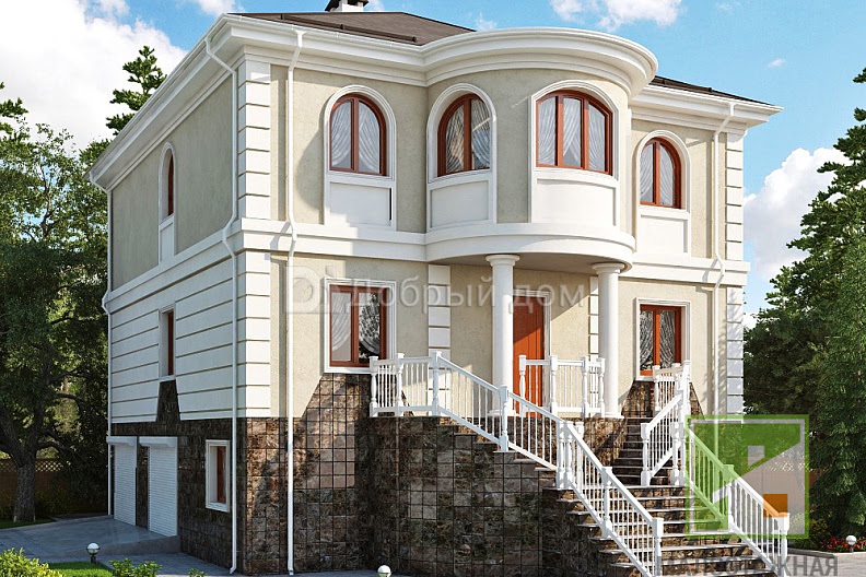 Проект AS-2204 - трехэтажный особняк в интересном архитектурном стиле. Особенности планировки - Первый этаж отведен под гараж на два автомобиля и технические помещения. - Центральный вход ведет сразу на второй этаж и выполнен в виде роскошной лестницы. - Дом украшен множеством интересных архитектурных элементов, которые придают ему изящности.