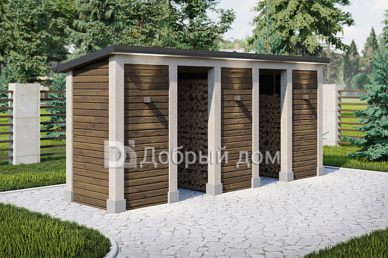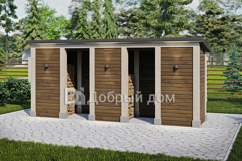 Проект дровника AS-2900-11 вместительная и функциональная постройка, изготавливается из деревянного бруса, является идеальным укрытием для дров от осадков.