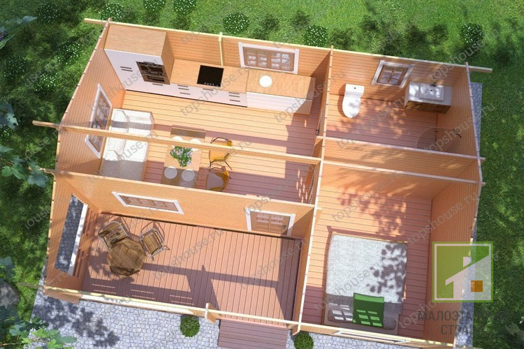 Эта надежная и удобная постройка сделает ваш отдых на даче приятным в любую погоду. В знойный летний день она подарит желанную прохладу, а в ненастный — укроет от непогоды и согреет теплом. Проект, разработанный специалистами компании «ТопсХаус», учитывает все аспекты комфорта и отлично подходит для семейного отдыха или в кругу друзей.