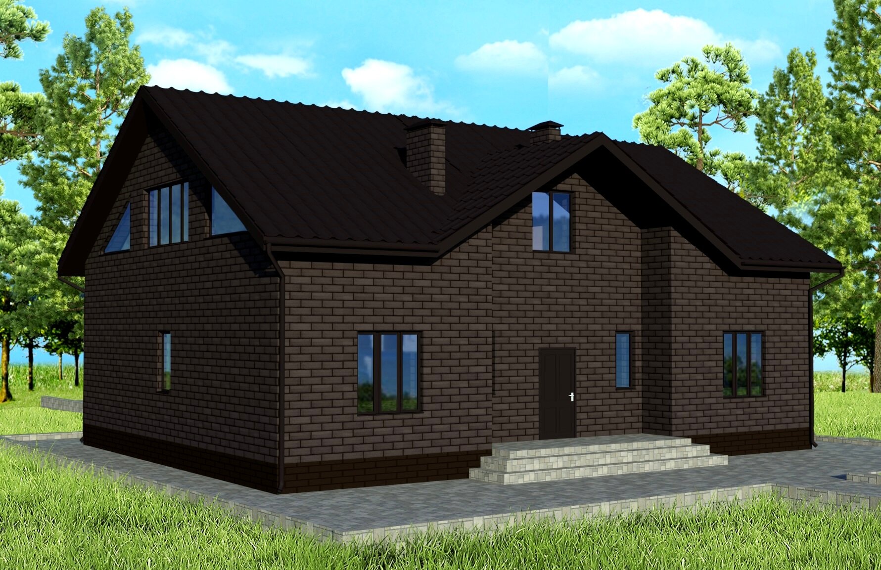 - Мансарда: кабинет, библиотека, зона отдыха с окнами Velux (угол наклона 35°)