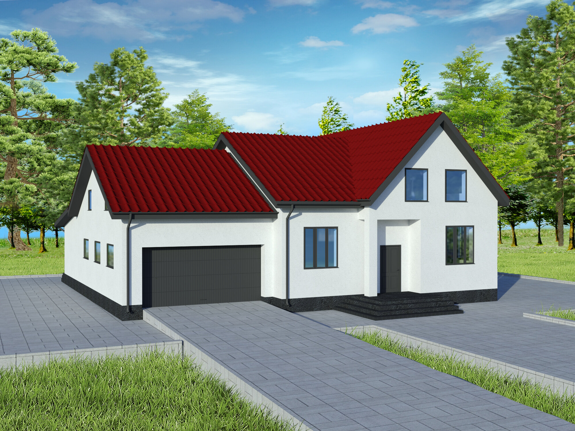 1 этаж: гостиная, кухня, котельная, гараж (пожарные нормы)